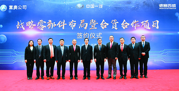 一汽股權董事長張影、富奧公司總經理甘先國、德賽西威總經理高大鵬代表三方共同簽署合資協議。長春市副市長王海英,一汽集團總經理奚國華、副總經理邱現東,一汽集團總經理助理采購部長張丕杰,吉林省國有資本運營有限責任公司董事長張志新,廣東德賽集團董事長、總裁姜捷,德賽西威董事長陳春霖等相關領導出席了簽約儀式。
