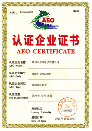 10月20日,藍微電子通過深圳海關復審并獲得AEO高級認證企業證書。至此,德賽集團已有德賽西威、德賽電池、藍微電子三家海關AEO高級認證企業。